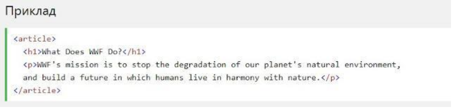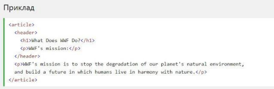 Приклади семантичних елементів: <form>, <table> і <article> - чітко визначає його зміст.